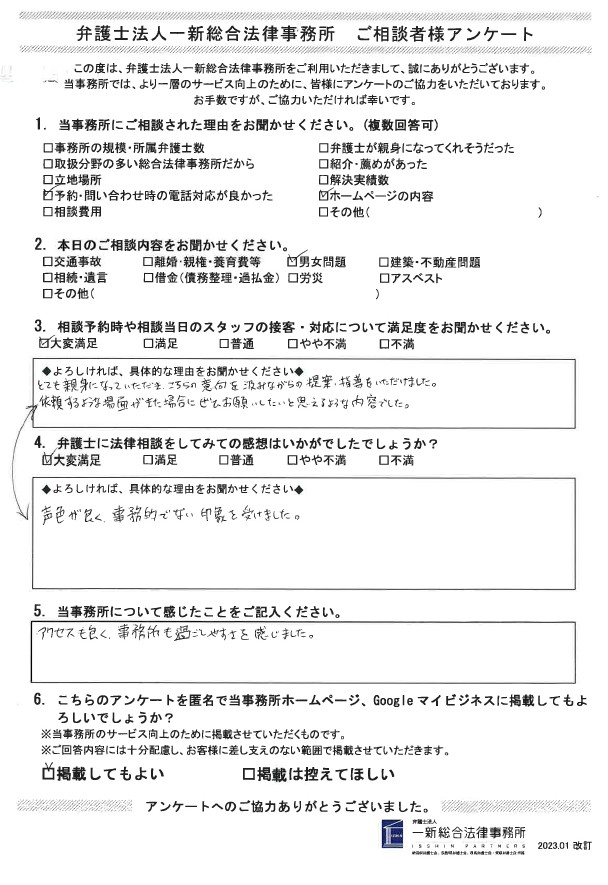 *一新総合法律事務所高崎事務所にご相談に来られたお客様の声をご紹介いたします*